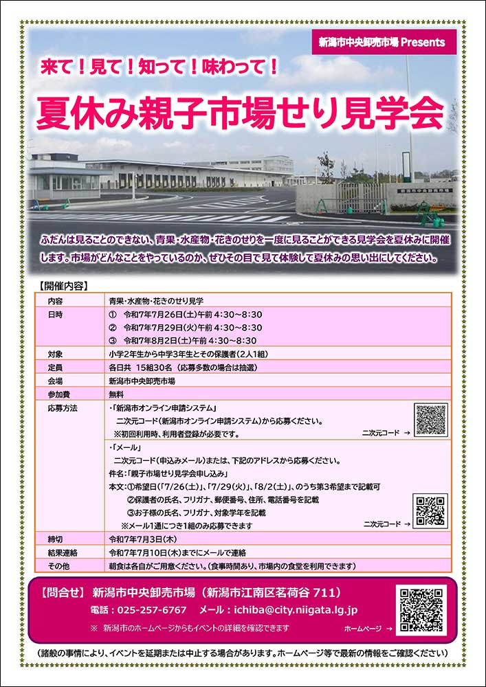 • 問い合わせ先:新潟市中央卸売市場(電話:025-257-6767)