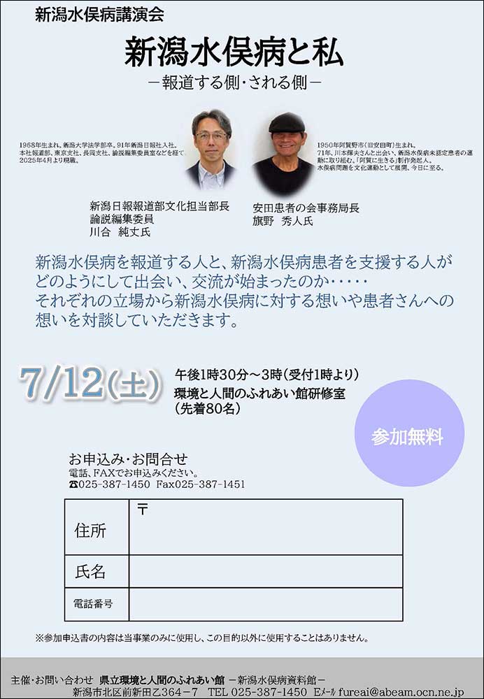 【2025.7/12開催】新潟水俣病講演会「新潟水俣病と私-報道する側・される側-」@新潟県立環境と人間のふれあい館-新潟水俣病資料館-
