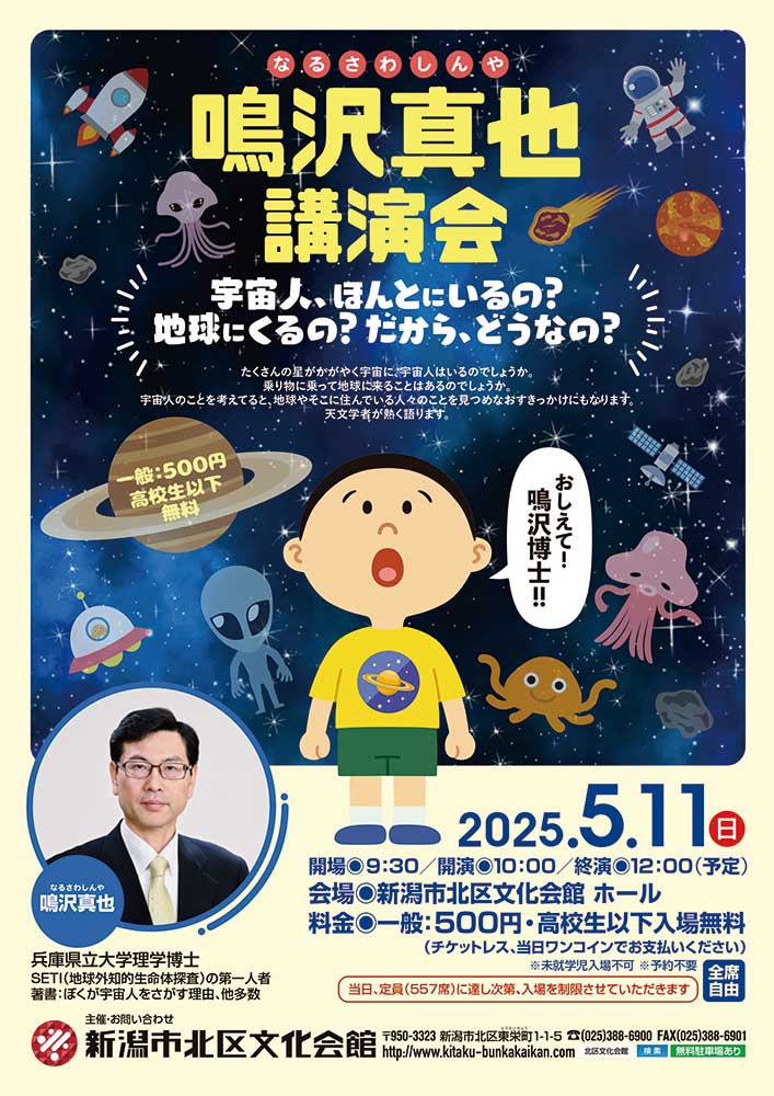 【2025.5/11開催】鳴沢真也 講演会「宇宙人、ほんとにいるの?地球にくるの?だから、どうなの?」@新潟市北区文化会館