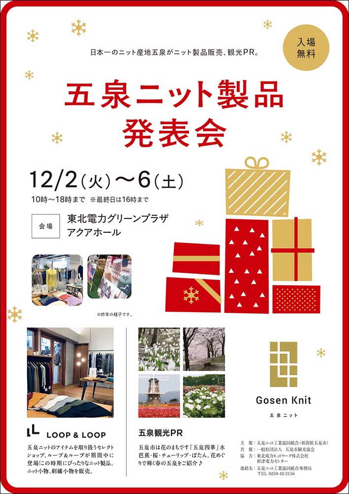 【2025.12/2~12/6開催】五泉ニット製品発表会 in 宮城県仙台市「東北電力グリーンプラザ」!