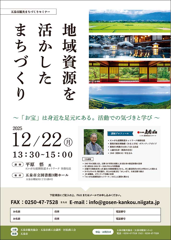 【2025.12/22開催】五泉市観光まちづくりセミナー「地域資源を活かしたまちづくり~お宝は身近な足元にある。活動での気づきと学び~」