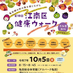(続きを読む・・・)(新潟市江南区ホームページより引用) 亀田郷の田園や梨畑、小阿賀野川サイクリングロードなど約8.5キロメートルを歩く「江南区健康ウォーク」を開催します。 自然に触れながら、ウォーキングでさわやかな汗を流しませんか? …