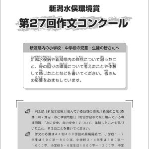 (続きを読む・・・)新潟県内の小学校・中学校の児童・生徒の皆さんへ 新潟水俣病や新潟県内の自然について思ったこと、身の回りの環境について考えたことや体験して感じたことなどを書いてください。皆さんの応募をおまちしています(応募期間20 …
